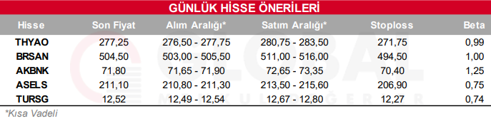 Bugün hareketli olmasını beklediğimiz hisseler: THYAO, BRSAN, AKBNK, ASELS, TURSG