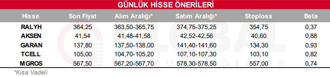 Bugün hareketli olmasını beklediğimiz hisseler: RALYH, AKSEN, GARAN, TCELL, MGROS.