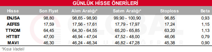 Gün içerisinde hareketli olmasını beklediğimiz hisseler;