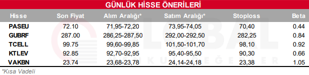 Bugün hareketli olmasını beklediğimiz hisseler: PASEU, GUBRF, TCELL, KTLEV, VAKBN.