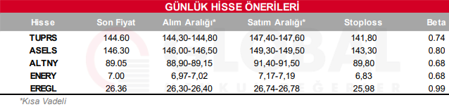 Bugün hareketli olmasını beklediğimiz hisseler: TUPRS-ASELS-ALTNY-ENERY-EREGL