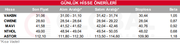 Bugün hareketli olmasını beklediğimiz hisseler: VAKBN, CWENE, MAVI, NTHOL, ASTOR