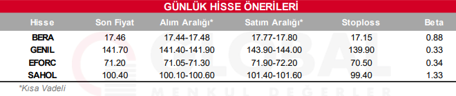 Bugün hareketli olmasını beklediğimiz hisseler: BERA, GENIL, EFORC, SAHOL.