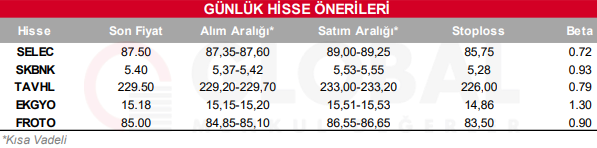 Bugün hareketli olmasını beklediğimiz hisseler: SELEC-SKBNK-TAVHL-EKGYO-FROTO