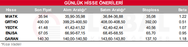 Bugün hareketli olmasını beklediğimiz hisseler: MIATK-GRTHO-YEOTK-ENJSA-GARAN