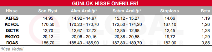 Bugün hareketli olmasını beklediğimiz hisseler: AEFES, KCHOL, ISCTR, EKGYO, DOAS