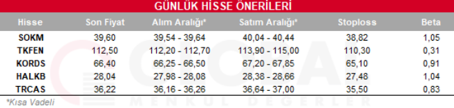 Bugün hareketli olmasını beklediğimiz hisseler: SOKM-TKFEN-KORDS-HALKB-TRCAS
