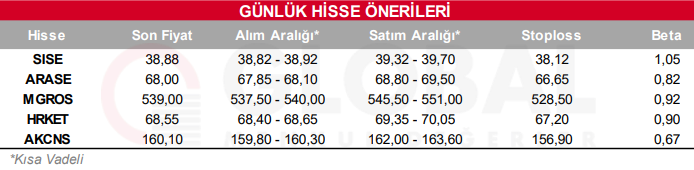 Bugün hareketli olmasını beklediğimiz hisseler: SISE, ARASE, MGROS, HRKET, AKCNS