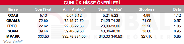Bugün hareketli olmasını beklediğimiz hisseler: ODAS, OBAMS, EREGL, SOKM, MPARK.