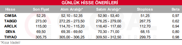 Gün içerisinde hareketli olmasını beklediğimiz hisseler;