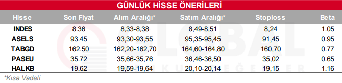 Bugün hareketli olmasını beklediğimiz hisseler: INDES, ASELS, TABGD, PASEU, HALKB.