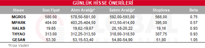 Bugün hareketli olmasını beklediğimiz hisseler: MGROS, MPARK, HALKB, THYAO, GESAN.
