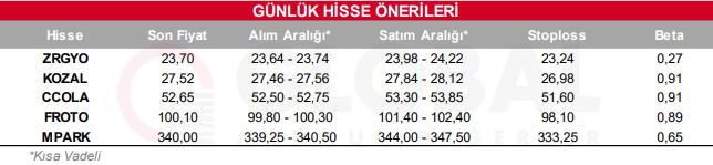 Bugün hareketli olmasını beklediğimiz hisseler: ZRGYO, KOZAL, CCOLA, FROTO, MPARK