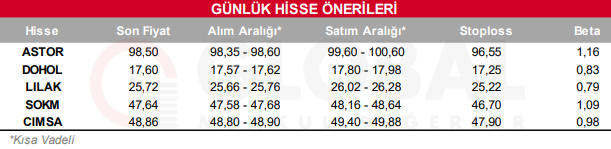 Bugün hareketli olmasını beklediğimiz hisseler: ASTOR, DOHOL, LILAK, SOKM, CIMSA
