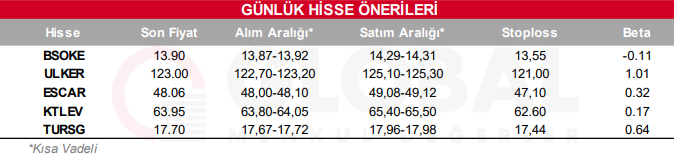 Bugün hareketli olmasını beklediğimiz hisseler: BSOKE, ULKER, ESCAR, KTLEV, TURSG.