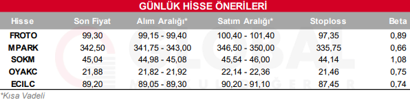 Bugün hareketli olmasını beklediğimiz hisseler: FROTO, MPARK, SOKM, OYAKC, ECILC