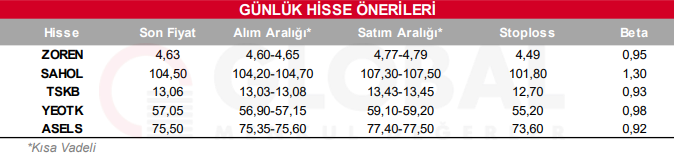 Bugün hareketli olmasını beklediğimiz hisseler: ZOREN, SAHOL, TSKB, YEOTK, ASELS.