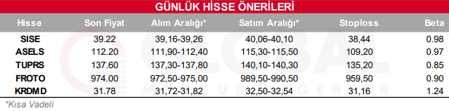 Bugün hareketli olmasını beklediğimiz hisseler: SISE, ASELS, TURPS, FROTO, KRDMD.