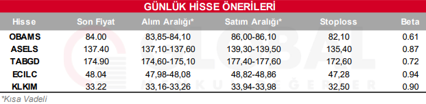 Bugün hareketli olmasını beklediğimiz hisseler: OBAMS, ASELS, TABGD, ECILC, KLKIM.