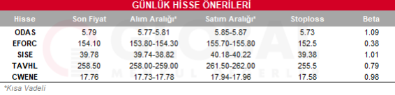 Bugün hareketli olmasını beklediğimiz hisseler: ODAS-EFORC-SISE-TAVHL-CWENE