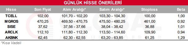 Bugün hareketli olmasını beklediğimiz hisseler: TCELL, MGROS, SISE, ARCLK, AKBNK