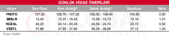 Bugün hareketli olmasını beklediğimiz hisseler: FROTO-BESLR-KOZAL-VESTL