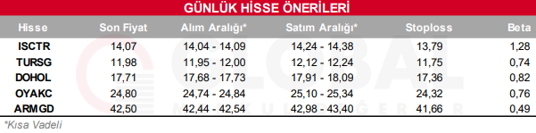 Bugün hareketli olmasını beklediğimiz hisseler: ISCTR, TURSG, DOHOL, OYAKC, ARMGD