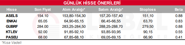 Bugün hareketli olmasını beklediğimiz hisseler: ASELS, ENKAI, GUBRF, KTLEV, PASEU.