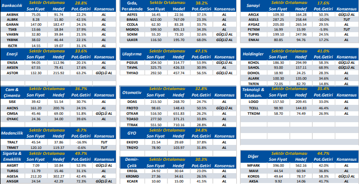 Not: Yukarıda yer alan hedef fiyatlar, potansiyel getiriler ve konsensus önerileri, Halk Yatırım öneri ve beklentileri değildir. Bu veriler, Reuters, Matriks, Bloomberg vb. güvenilir olduğuna inanılan ve en az 3 analist tarafından paylaşılan hedef fiyat ve tavsiyeler olup bilgi paylaşımı amacıyla listelenmiştir.