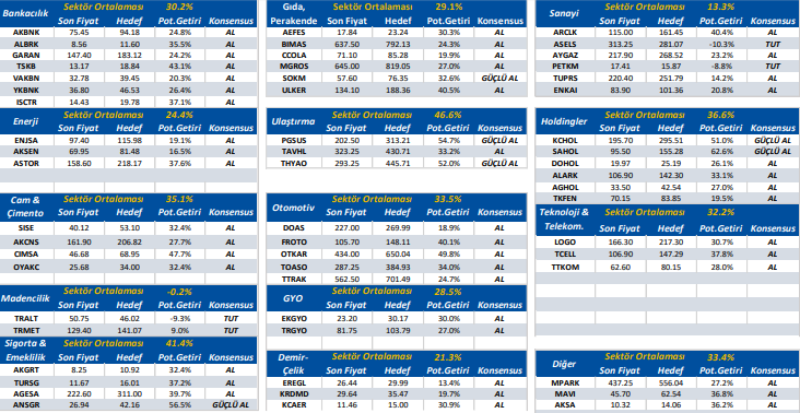 Not: Yukarıda yer alan hedef fiyatlar, potansiyel getiriler ve konsensus önerileri, Halk Yatırım öneri ve beklentileri değildir. Bu veriler, Reuters, Matriks, Bloomberg vb. güvenilir olduğuna inanılan ve en az 3 analist tarafından paylaşılan hedef fiyat ve tavsiyeler olup bilgi paylaşımı amacıyla listelenmiştir.