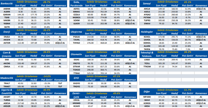 Not: Yukarıda yer alan hedef fiyatlar, potansiyel getiriler ve konsensus önerileri, Halk Yatırım öneri ve beklentileri değildir. Bu veriler, Reuters, Matriks, Bloomberg vb. güvenilir olduğuna inanılan ve en az 3 analist tarafından paylaşılan hedef fiyat ve tavsiyeler olup bilgi paylaşımı amacıyla listelenmiştir.