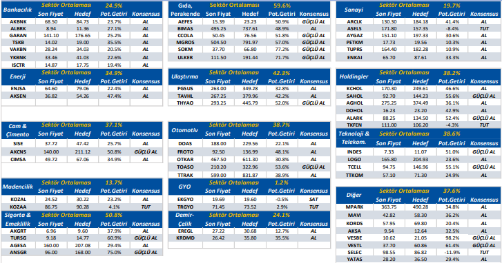 Not: Yukarıda yer alan hedef fiyatlar, potansiyel getiriler ve konsensus önerileri, Halk Yatırım öneri ve beklentileri değildir. Bu veriler, Reuters, Matriks, Bloomberg vb. güvenilir olduğuna inanılan ve en az 3 analist tarafından paylaşılan hedef fiyat ve tavsiyeler olup bilgi paylaşımı amacıyla listelenmiştir.