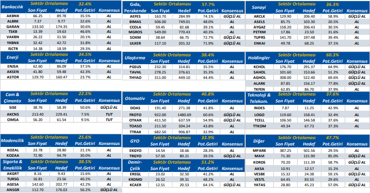 Not: Yukarıda yer alan hedef fiyatlar, potansiyel getiriler ve konsensus önerileri, Halk Yatırım öneri ve beklentileri değildir. Bu veriler, Reuters, Matriks, Bloomberg vb. güvenilir olduğuna inanılan ve en az 3 analist tarafından paylaşılan hedef fiyat ve tavsiyeler olup bilgi paylaşımı amacıyla listelenmiştir.
