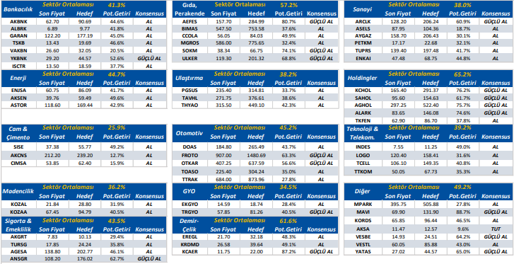 Not: Yukarıda yer alan hedef fiyatlar, potansiyel getiriler ve konsensus önerileri, Halk Yatırım öneri ve beklentileri değildir. Bu veriler, Reuters, Matriks, Bloomberg vb. güvenilir olduğuna inanılan ve en az 3 analist tarafından paylaşılan hedef fiyat ve tavsiyeler olup bilgi paylaşımı amacıyla listelenmiştir.