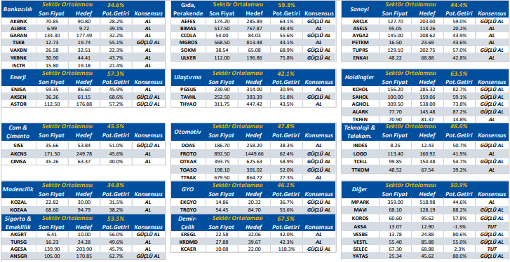 Not: Yukarıda yer alan hedef fiyatlar, potansiyel getiriler ve konsensus önerileri, Halk Yatırım öneri ve beklentileri değildir. Bu veriler, Reuters, Matriks, Bloomberg vb. güvenilir olduğuna inanılan ve en az 3 analist tarafından paylaşılan hedef fiyat ve tavsiyeler olup bilgi paylaşımı amacıyla listelenmiştir.