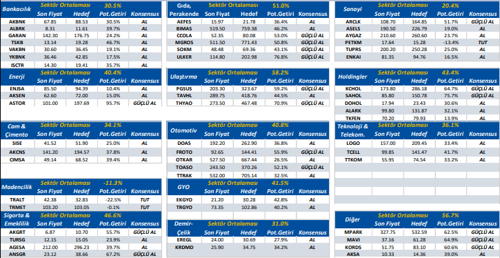 Not: Yukarıda yer alan hedef fiyatlar, potansiyel getiriler ve konsensus önerileri, Halk Yatırım öneri ve beklentileri değildir. Bu veriler, Reuters, Matriks, Bloomberg vb. güvenilir olduğuna inanılan ve en az 3 analist tarafından paylaşılan hedef fiyat ve tavsiyeler olup bilgi paylaşımı amacıyla listelenmiştir.