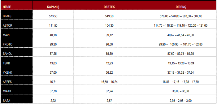 BIST100 Teknik Görünüm ve Günün Öne Çıkan Hisse Önerileri