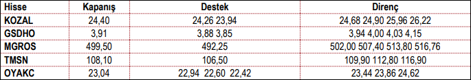 Bugün üç şirketin hak kullanımı gerçekleşecek. EREGL ve ISDMR 0,21 TL net, KCAER 0,07 TL net temettü dağıtımı gerçekleştirecek.