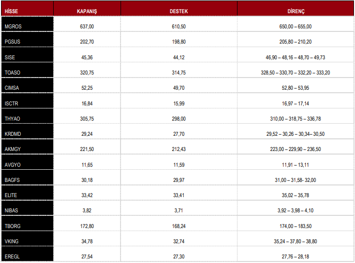 BIST100 Teknik Görünüm ve Teknik Hisse Önerileri