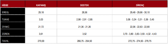 BIST100 endeksinde 10.816 ve 10.608 (boşluk) seviyeleri destek olarak izlenebilir. Yukarı yönlü hareketlerde 11.158 direnci önemli.