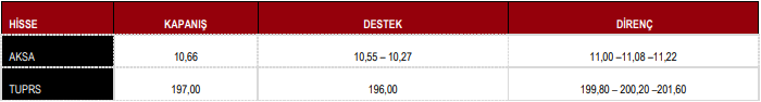 BIST100 endeksinde 11.017-11.077 bölgesini öncelikli direnç; 11.200-11.300 ($266) aralığını ise yukarı yönlü hareketin devamında önemli bir direnç bölgesi olarak izliyoruz. Yıllık ortalamanın bulunduğu 10.900-10.870 bandına yönelen endekste, 10.857 seviyesindeki boşluk ve 10.815 destek seviyeleri takip edilebilir. Satış baskısının artması halinde 10.728 ve 10.565 seviyelerindeki fiyat boşluklarının kapanması mümkün.