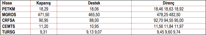 Teknik olarak BIST100’de 11.062 öncelikli olmak üzere 11.150 ve 11.259 seviyeleri başlıca direnç noktalarıdır. Geri çekilmelerde ise 10.735 ve 10.616 seviyeleri tepki alımları açısından izlenebilecek destek konumundadır.