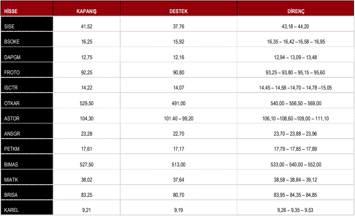 BIST100 Teknik Görünüm ve Günün Öne Çıkan Hisse Önerileri