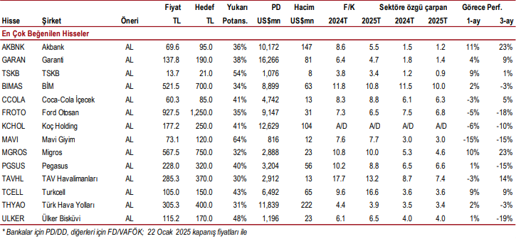 En beğendiğimiz hisseler: