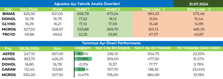 Ağustos Ayında Hareket Yapmasını Beklediğimiz Hisseler