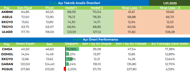 Oca Ayında Hareket Yapmasını Beklediğimiz Hisseler