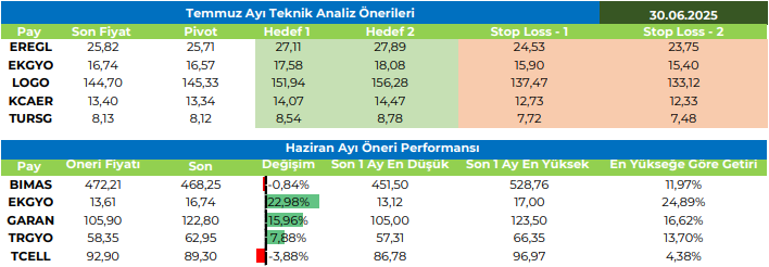 Temmuz Ayında Hareket Yapmasını Beklediğimiz Hisseler