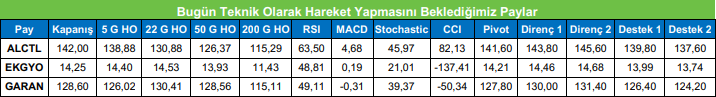 Bugün Teknik Olarak Hareket Yapmasını Beklediğimiz Paylar