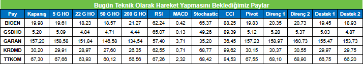 Bugün Teknik Olarak Hareket Yapmasını Beklediğimiz Paylar