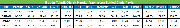 Bugün Teknik Olarak Hareket Yapmasını Beklediğimiz Paylar